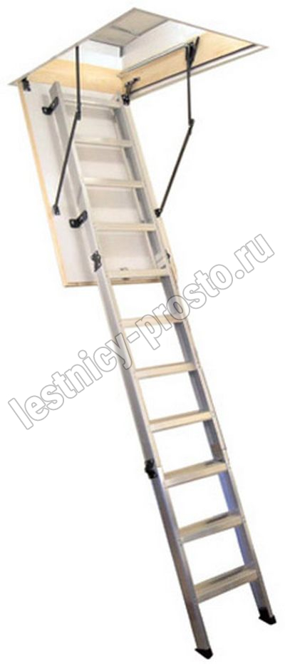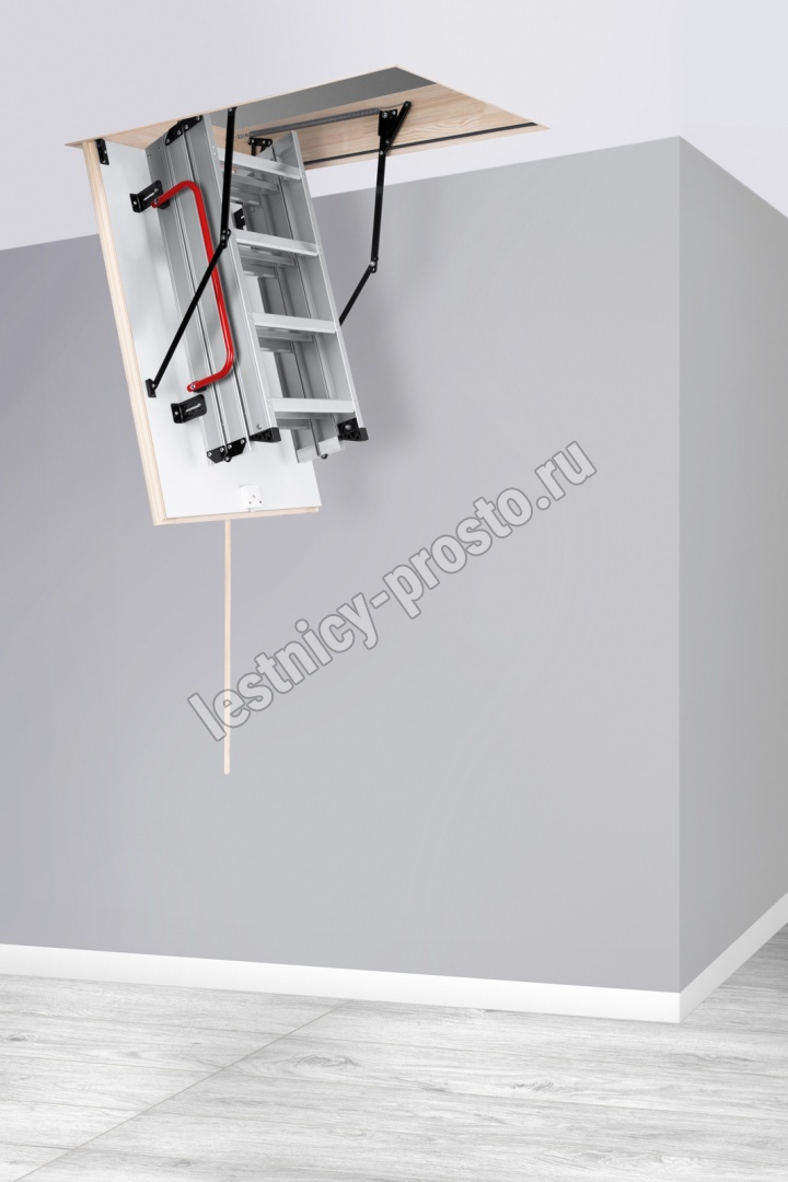 Лестница складная трехсекционная. Модель ALU PROFI идеальна для условий, когда чердак плохо утеплен и требует дополнительной теплоизоляции. Отличительной чертой лестницы ALUPROFI является легкая и чрезвычайно прочная лестница из алюминия высочайшего качества. Лестницы имеют нескользящие ножки, которые идеально прилегают к земле, предотвращают появление царапин на поверхности пола и придают лестнице эстетичный вид после ее резки.
