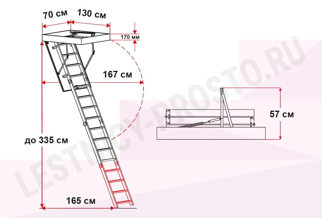 Чердачная лестница OMAN Extra LONG 70×130 см, h-330 см
