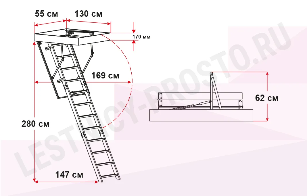 Чердачная лестница OMAN POLAR 55×130 см, h-280 см