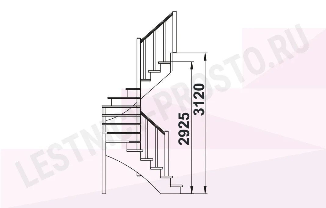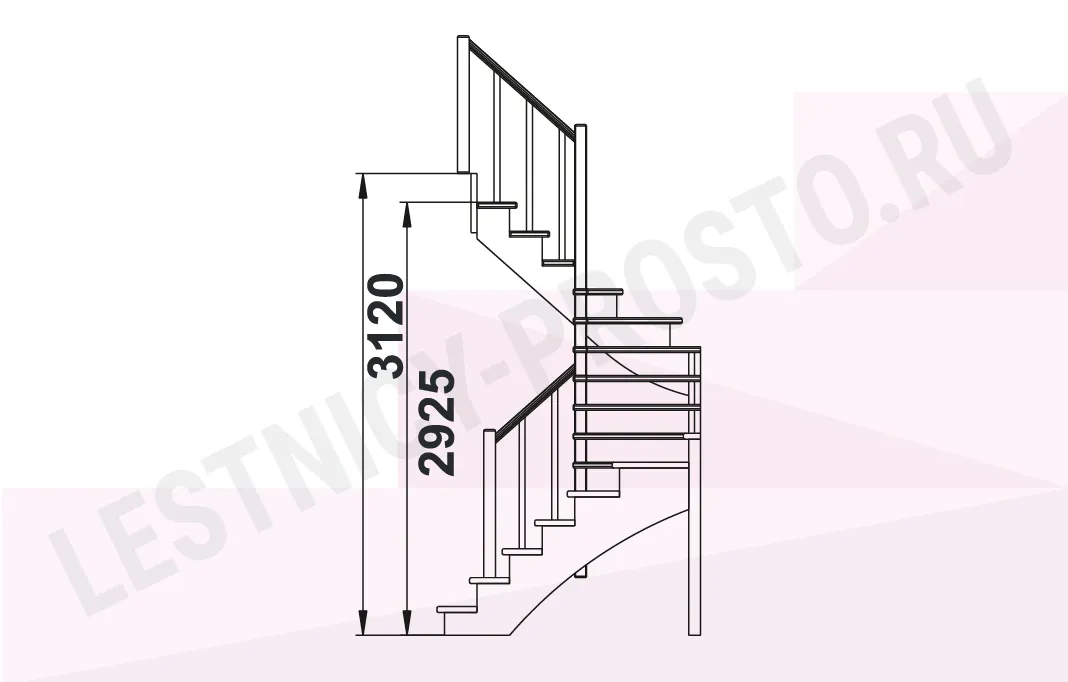 Схема лестницы К-003М/1 с поворотом налево