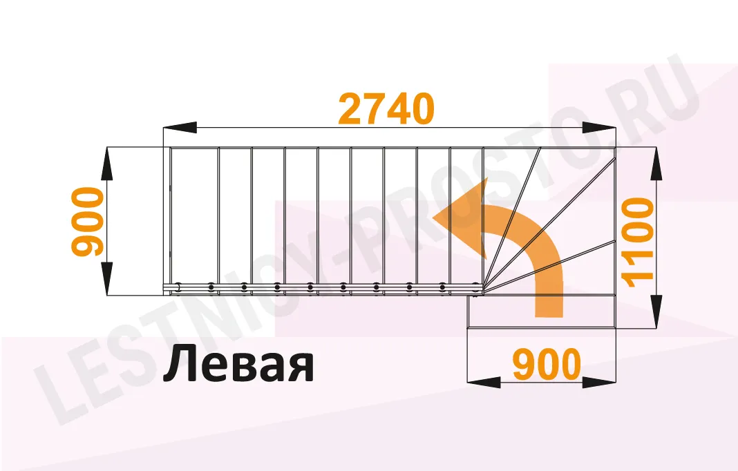 Схема лестницы К-008М с поворотом налево