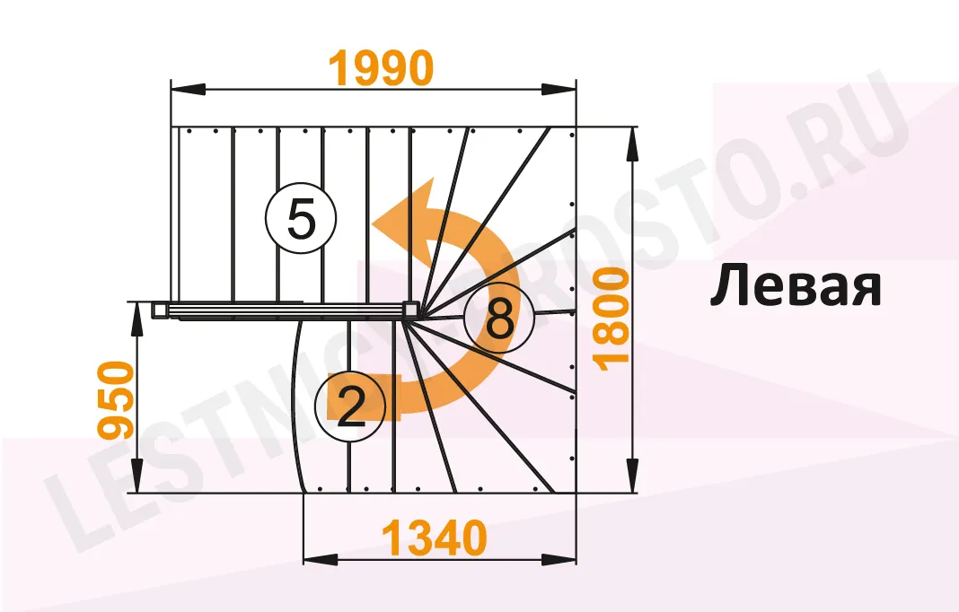 Схема лестницы К-003М/4 с поворотом налево
