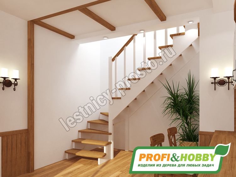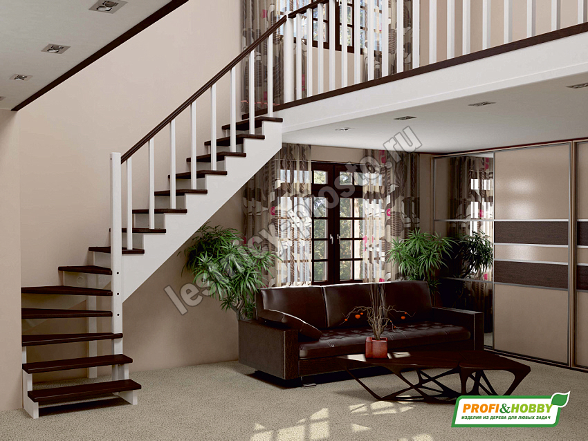 • Базовое ограждение (прямые столбы и балясины), сосна - по одной на ступень