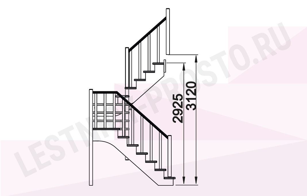 Ограждение у лестницы с обеих сторон (снизу до поворота)