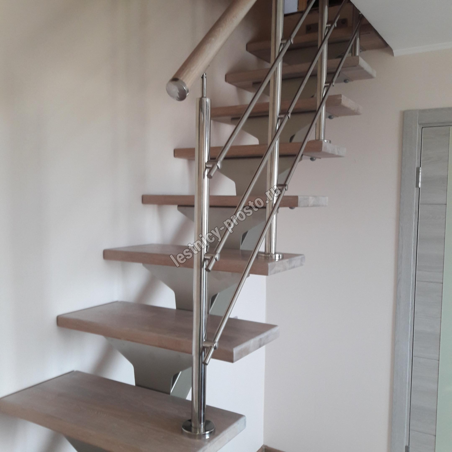 Буковый поручень, диаметром 50 мм. без какого либо покрытия - по желанию может быть окрашен вместе со ступенями,