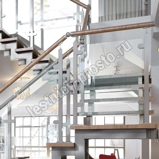 Ограждение для П-образной лестницы PROSTO DUE/DOUBLE со стеклом