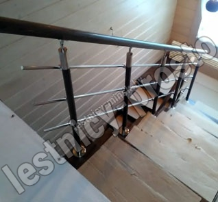Ограждение для П-образной лестницы PROSTO DUE/DOUBLEс крашеными стойками и струнами