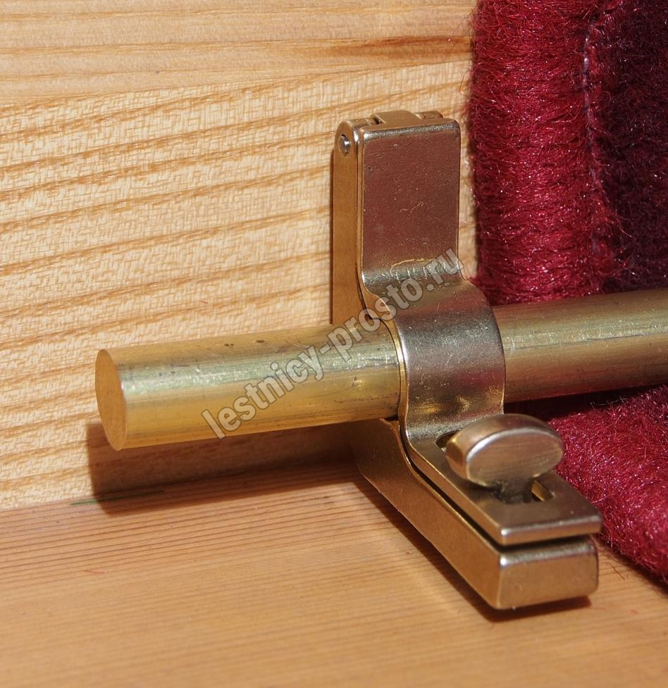 Ковродержатель комплектуется двумя держателями из латуни цвета золото, а также цельным прутком из латуни длиной от 171 до 200 см. Конструкция является сборно-разборной не требующей демонтажа креплений, что делает ее долговечной и очень удобной для чистки ковров и ковровых покрытий.