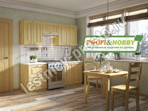 Небольшой кухонный гарнитур из 100% массива сосны шириной всего 2 и высотой 2,14 метра (верхние шкафы 72 см). Один из самых распространенных проектов кухни, который подойдёт для небольшой квартиры, загородного дома, гостиницы или хостела. Цвет на выбор - более 20 вариантов (при заказе кухни в нашем интернет магазине просьба указывать название цвета в комментариях).
