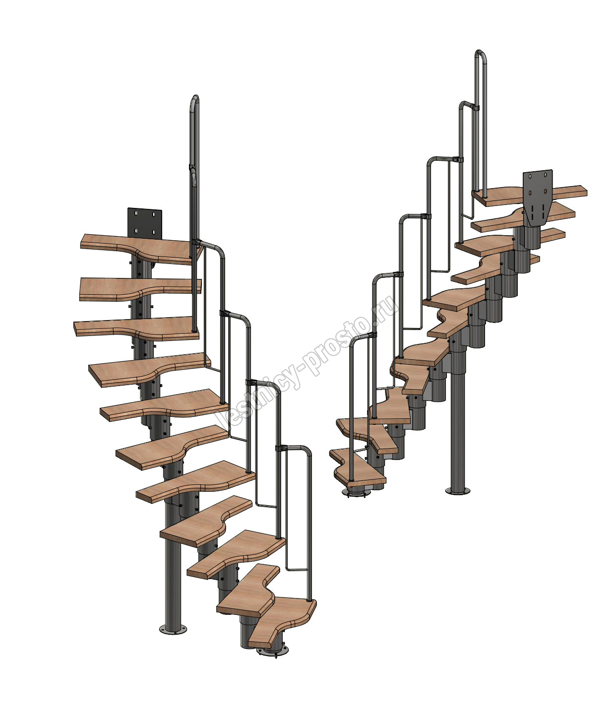 Лестница Prosto Urban Black гусиный шаг 700 мм, h198-288 см (11 ступеней), бук