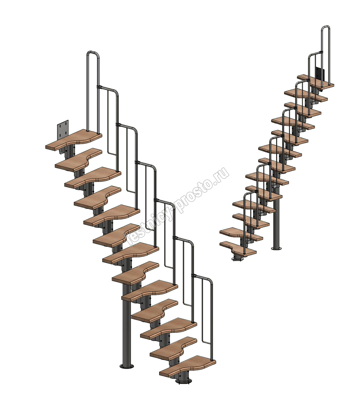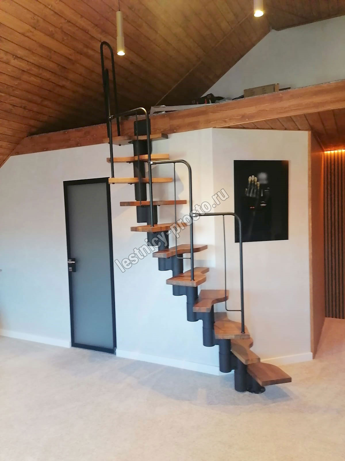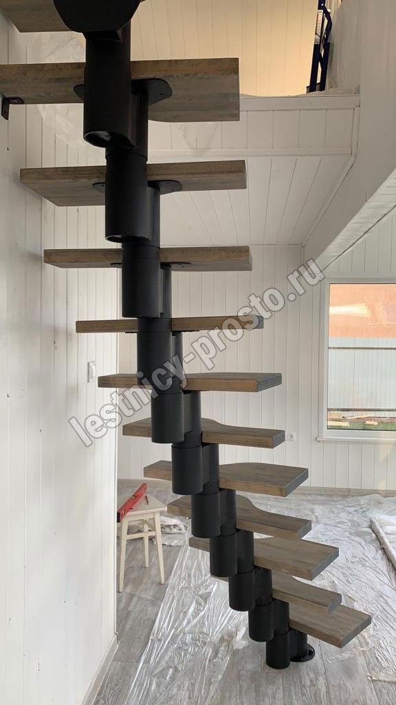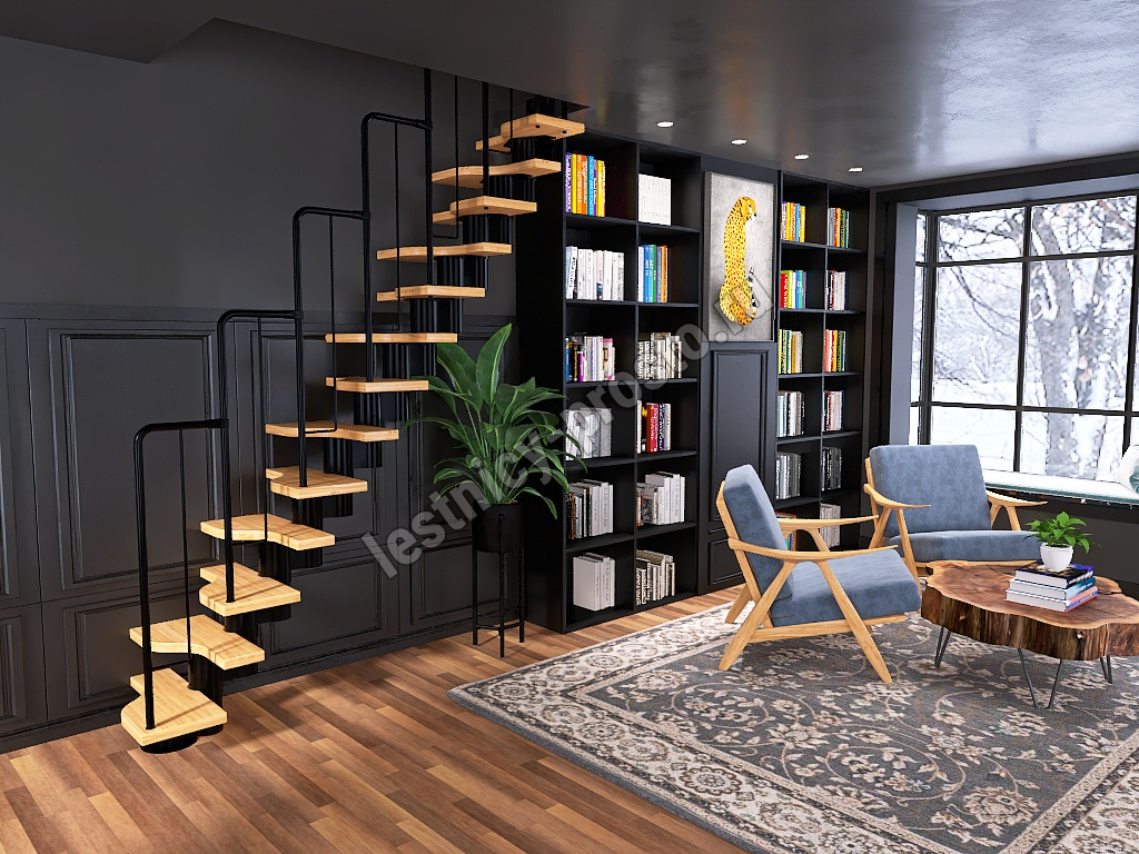Лестница Prosto Urban Black гусиный шаг 700 мм, h234-336 см (13 ступеней), бук