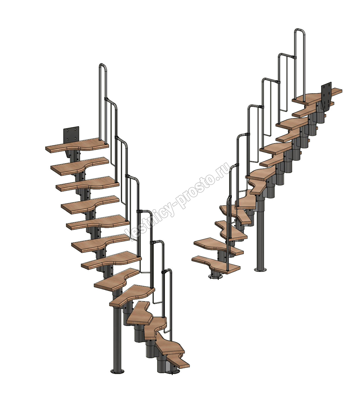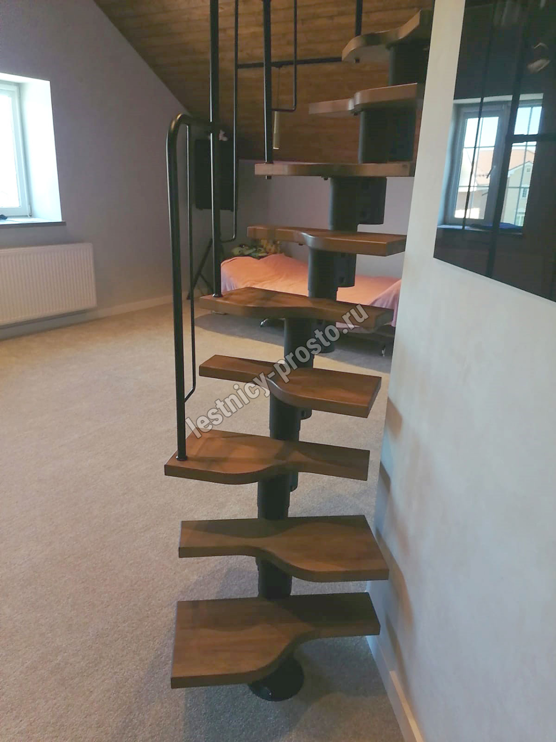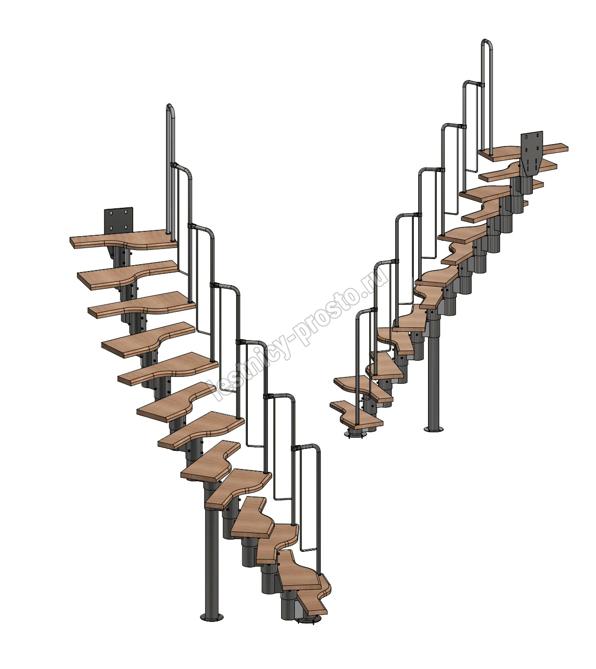 Лестница Prosto Urban Black гусиный шаг 700 мм, h234-336 см (13 ступеней), бук