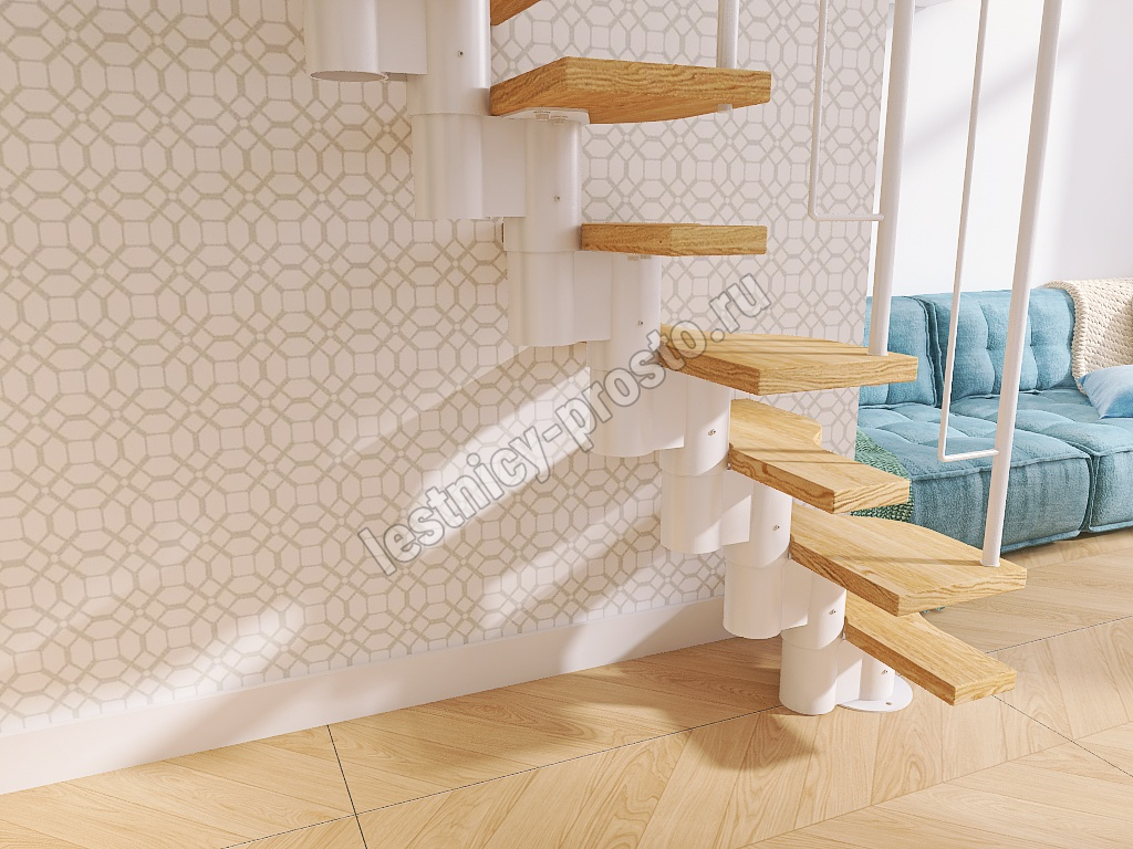 Лестница Prosto Urban White гусиный шаг 700 мм, h234-336 см (13 ступеней), бук