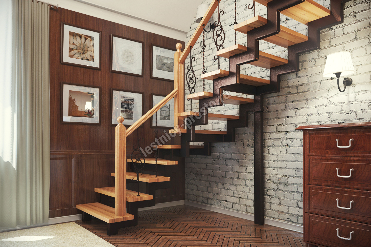 Лестница Prosto Double 50×100 г-образная, ступени из лиственницы |