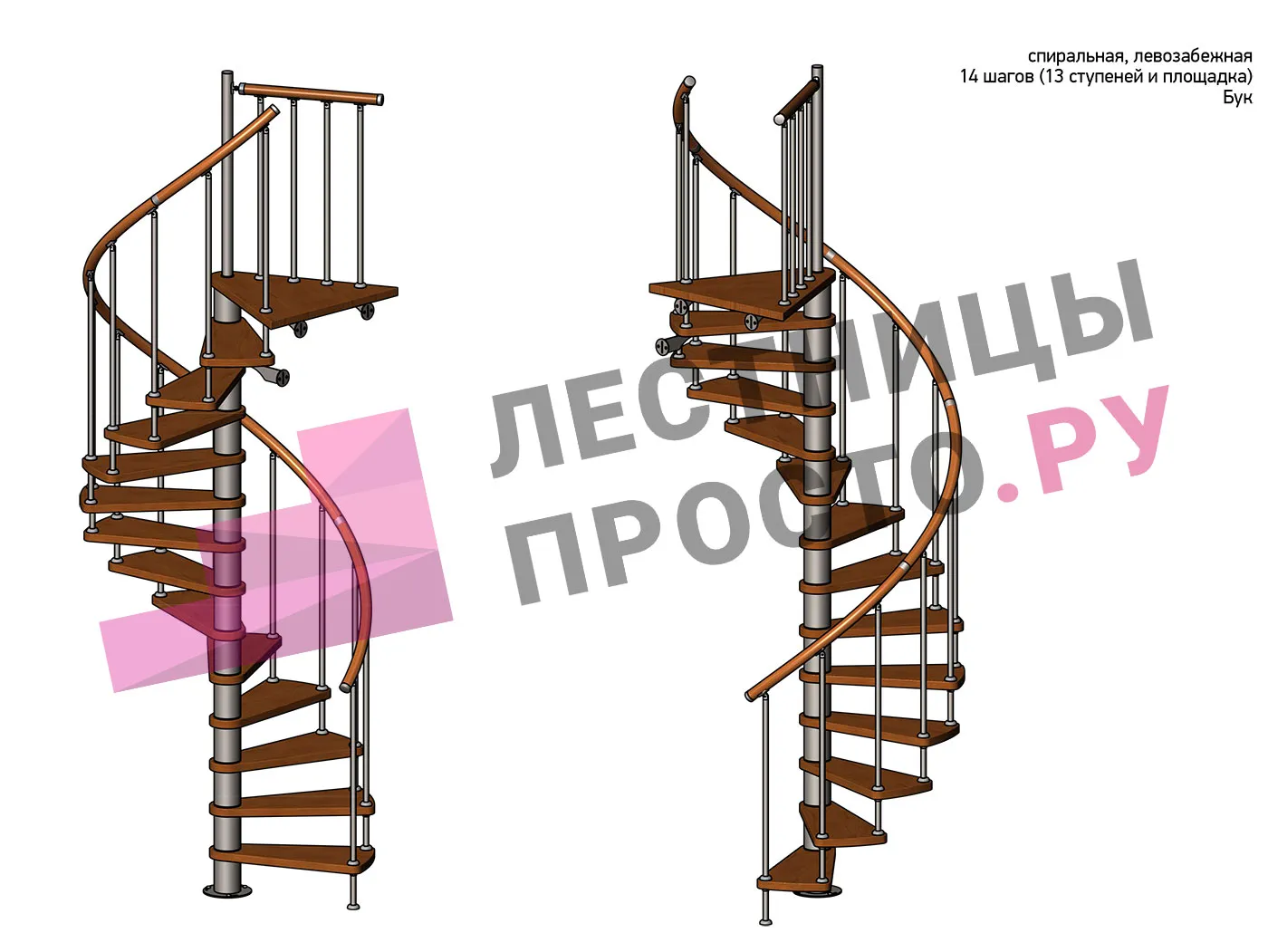 Левая, d=140см, 13 ступеней + площадка