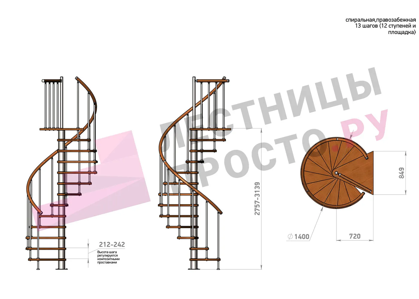 | Винтовая лестница Prosto Spiral Black D140см, h275.7-313.9 см |