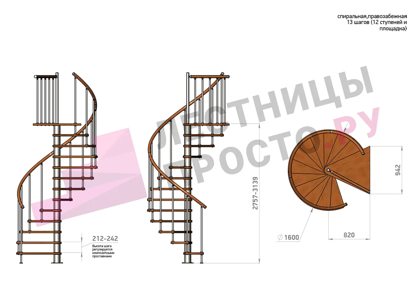| Винтовая лестница Prosto Spiral Black D160см, h275.7-313.9 см |