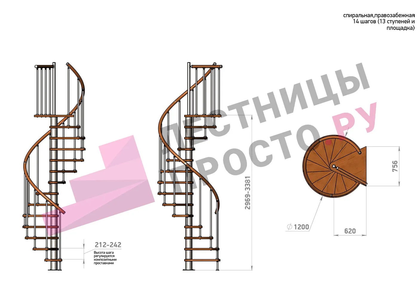 | Винтовая лестница Prosto Spiral Black D120см, h318.2-362.3 см |