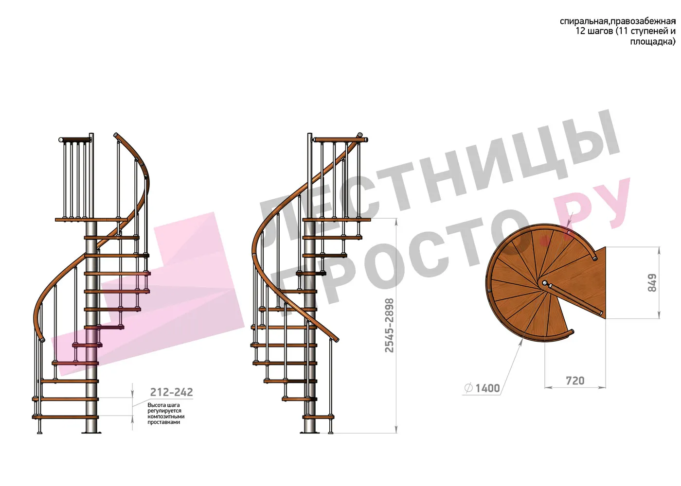 | Винтовая лестница Prosto Spiral Black D140см, h254.5-289.8 см |