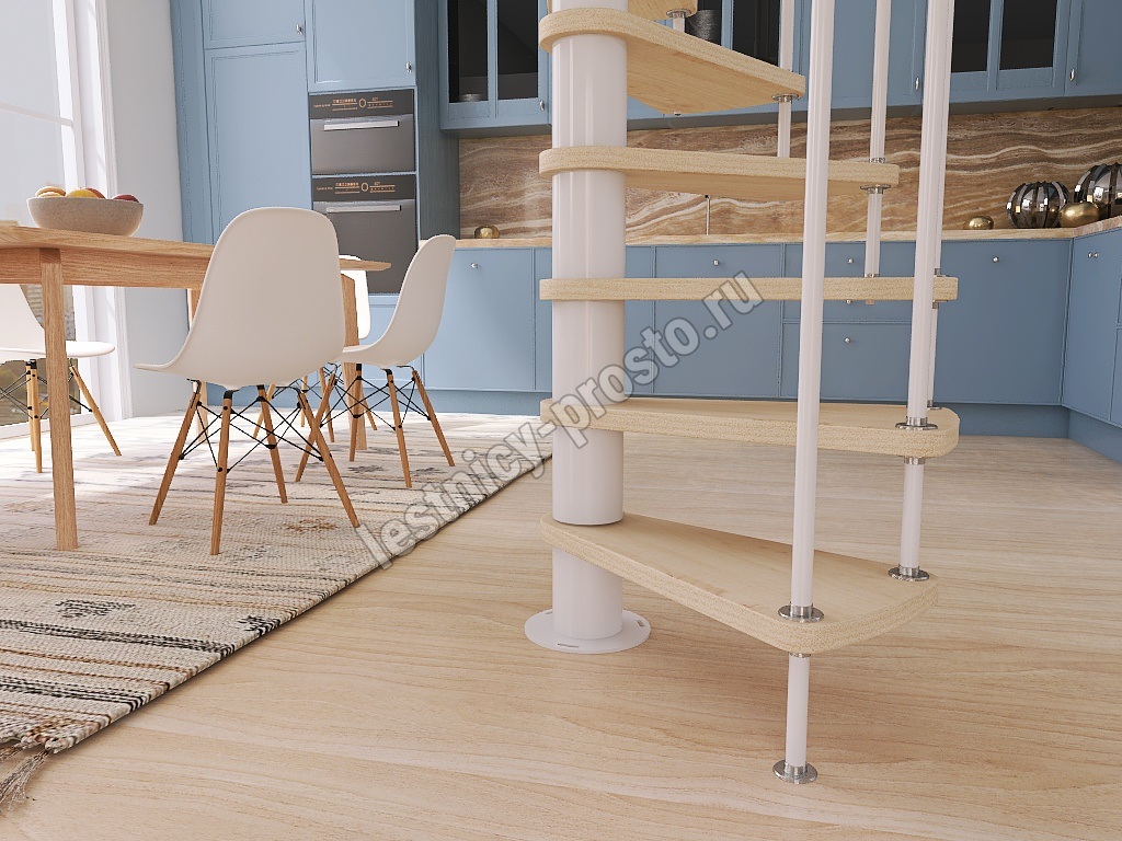 Винтовая лестница Prosto Spiral White D140см, h260.5-304.6 см, бук