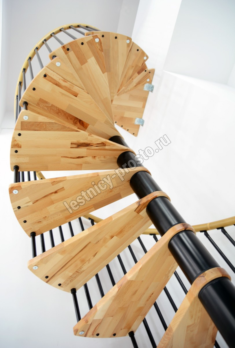 Винтовая лестница SPIRAL WOOD d140 см, чёрная, лакированный дуб