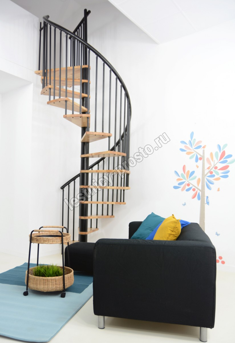 Винтовая лестница SPIRAL EFFECT d140 см, черная, лакированный бук