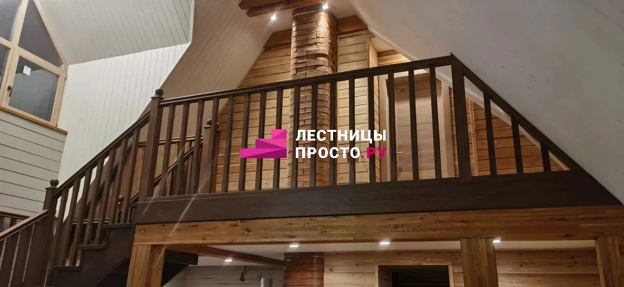 Прямая деревянная лестница с балюстрадой